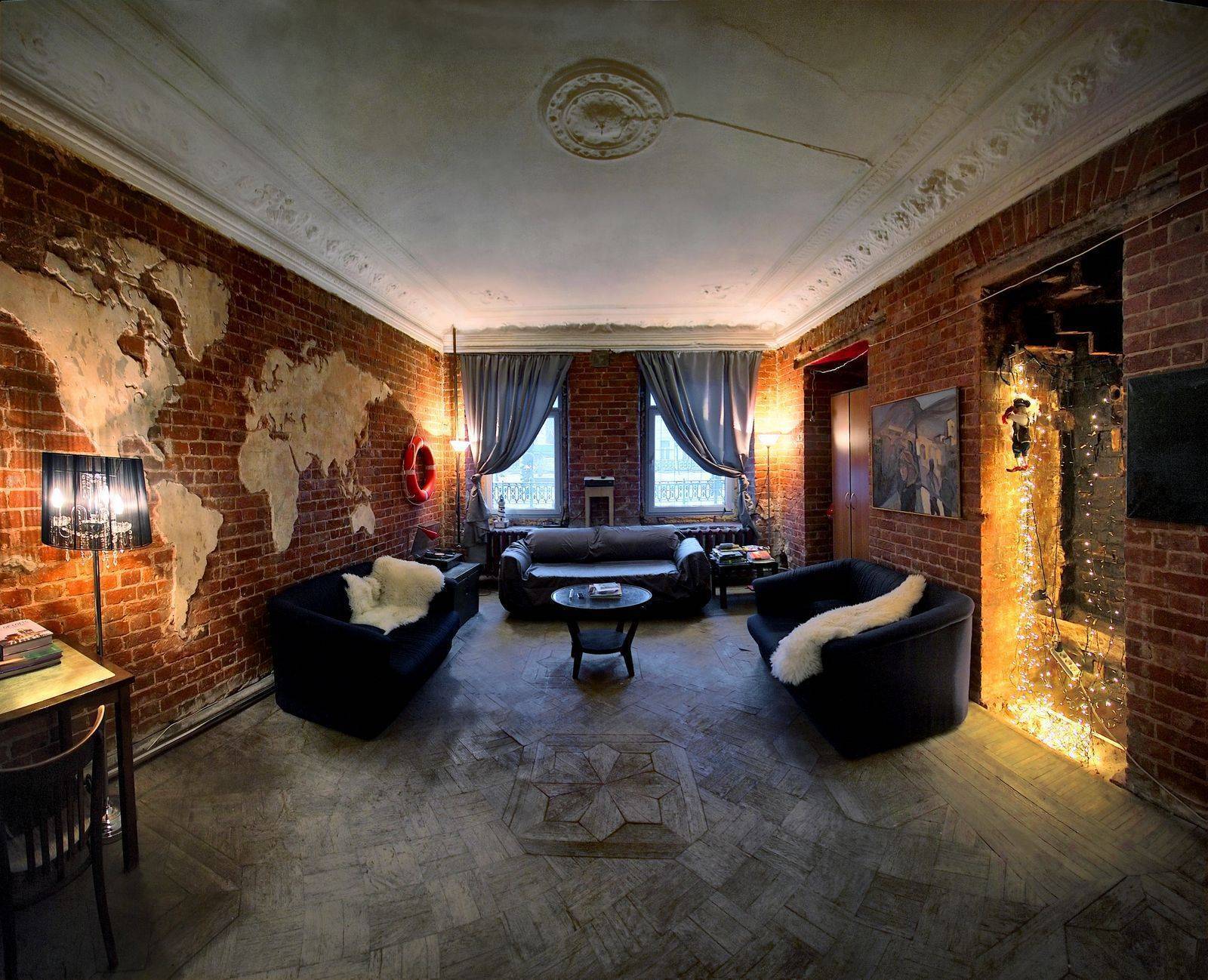 Выразительности стилю добавят трещины и сколы на стенах, так что если что-то подобное есть на покрытии, то лучше его оставить, чтобы каким-то образом обыграть с обстановкой. Дизайнеры нередко прибегают к выделению одной главной стены, самой привлекательной на вид и оригинальной в плане материала или же наименее подготовленной.