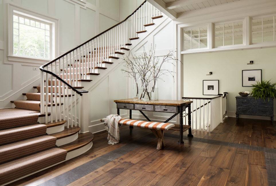 Для частных домов с компактными прихожими винтовые лестницы на второй этаж являются наиболее эффективным решением. Вообще-то они здорово помогают экономить место в любых пространствах, поэтому их устанавливают и в гостиных, и на чердак, и т. д. Кто-то может найти их не очень удобными для подъема, а кто-то будет в восторге от весёлого спуска. В любом случае, металлические, кованые и деревянные винтовые лестницы сегодня очень популярны.