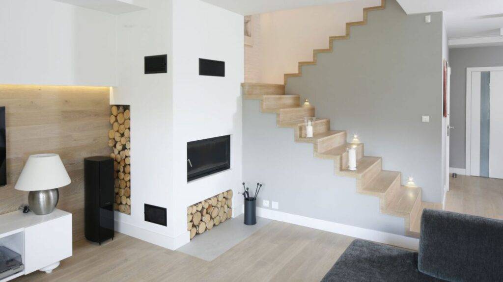 9. Лестница может разделять разные уровни в доме; равномерная отделка помогает красиво оформить пространство и сохранить целостность.