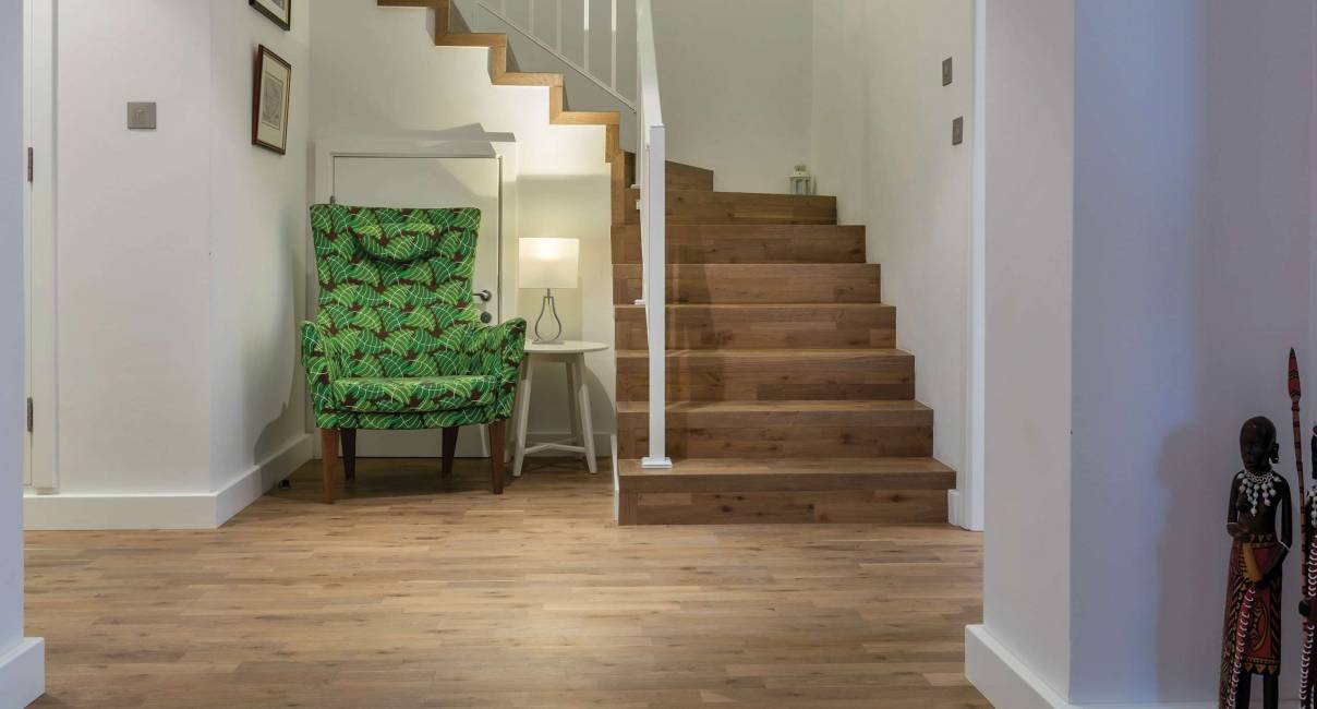 Для бетона можно использовать любой материал, который используется как напольное покрытие. Паркет можно заменить ламинатом, традиционным или полимерным. Ламинат может имитировать фактуру и форму доски, но срок эксплуатации отличается от оригинала. Так, можно оформить края ступеней за короткий срок.