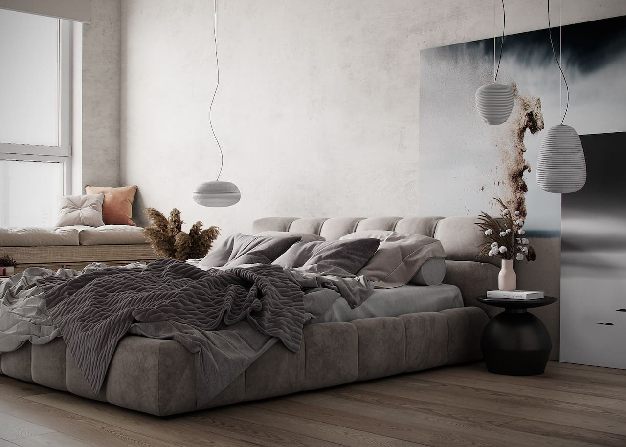 Например, светло-серые стены балансируй с белым диваном, ковром, журнальным столиком и люстрой. Или используй обои в бело-серую полоску в сочетании с белым потолком, акцентную темно-серую мебель – с белым диваном, фоном ковра, горшками и подставками для цветов. Немного контраста можно прибавить черными деталями.