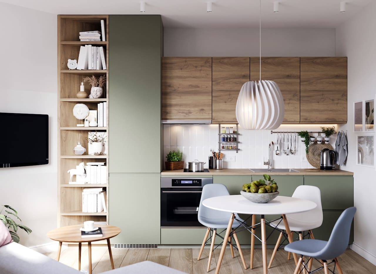 В отделке небольших помещений предпочтение отдается натуральным материалам и естественным цветам. Для малогабаритной квартиры неприемлемо использование пластиковой мебели. Органично пластиковые фасады будут смотреться только на кухне.