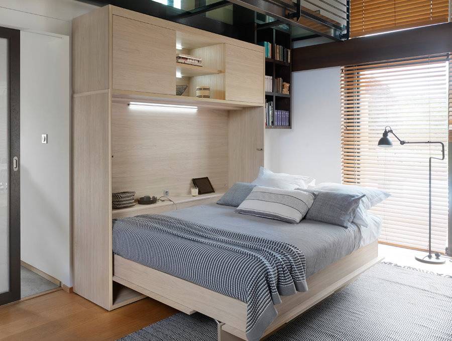 Сэкономить место для хранения постельного белья поможет диван. Неплохим вариантом считается также встроенная в шкаф-кровать, которая убирается в шкаф днем. При достаточной высоте потолка спальное место может быть размещено на втором ярусе. Сэкономить пространство поможет так же обустройство спального места на подоконнике, который должен быть предварительно расширен.