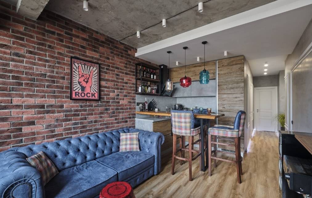 Лофты — выбор для современных залов. Часто достаточно отказаться от штукатурки, чтобы помещение было отделано необработанным кирпичом. Этот постиндустриальный климат идеально вписывается в тенденции XXI века. Квартиры не строят из декоративного красного кирпича, поэтому вы можете им декорировать стену самостоятельно.