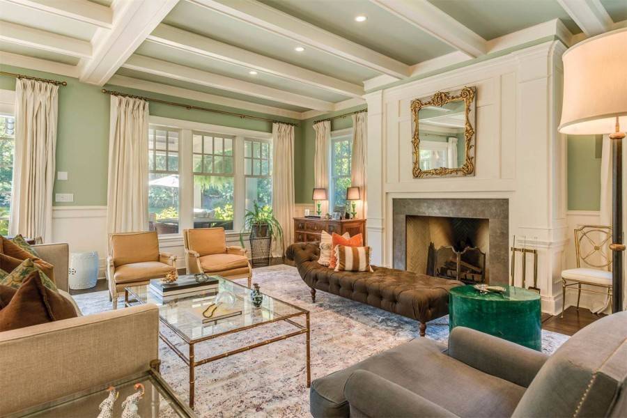 Это могут быть бежевый, серо-голубой, светло-зеленый, фисташковый и оливковый тона. Их следует разбавлять другими теплыми оттенками. Например, сине-бежевая небольшая квадратная гостиная смотрится интересно, это колоритное оформление. Это может быть комната в стиле барокко или стильная минималистичная комната.