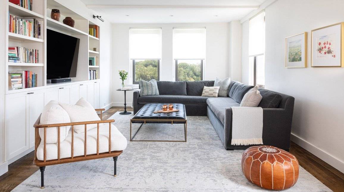 Важно наличие большого окна и телевизора. В большой гостиной могут быть несколько зон