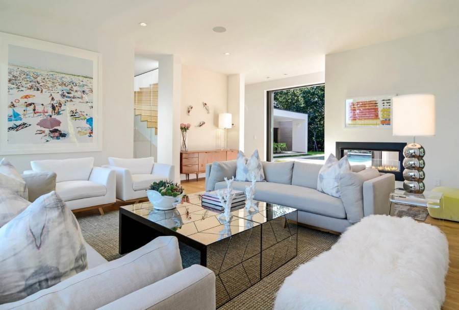 В первую очередь, при оформлении подобной гостиной очень важно сохранять свободное пространство. Поэтому не стоит увлекаться расстановкой большого количества мебели