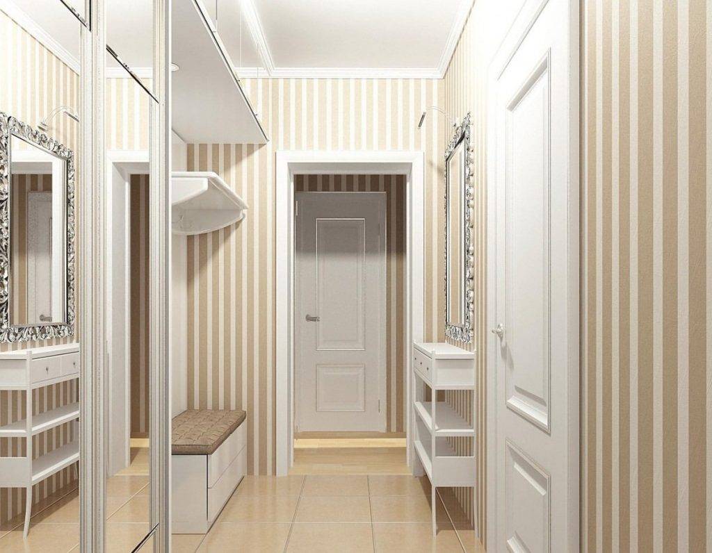 Светлые обои и зеркало во весь рост зрительно увеличат пространство.