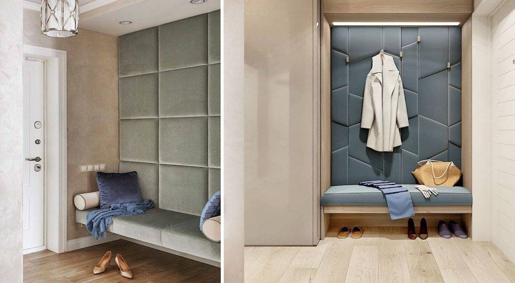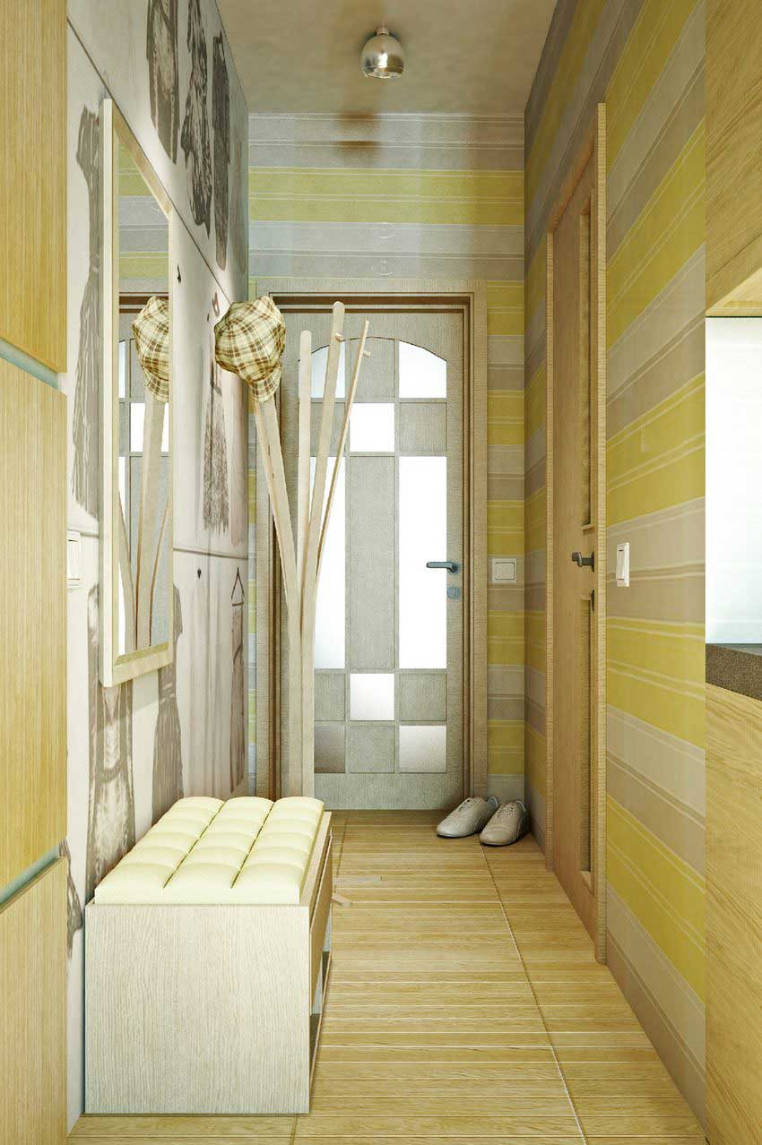 Входная зона может состоять из небольшой банкетки, зеркала и вешалки, но место хранения для сезонных вещей желательно предусмотреть даже при ремонте узкой прихожей.