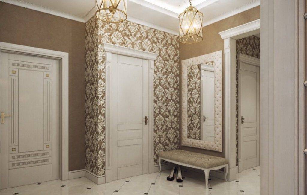 Трудно ошибиться, назвав обои самым распространенным отделочным материалом для стен современной прихожей в панельном доме. Примечательный факт: в эпоху засилья провокативных рисунков и кричащих тонов старая добрая классика продолжает сохранять свое очарование и актуальность.