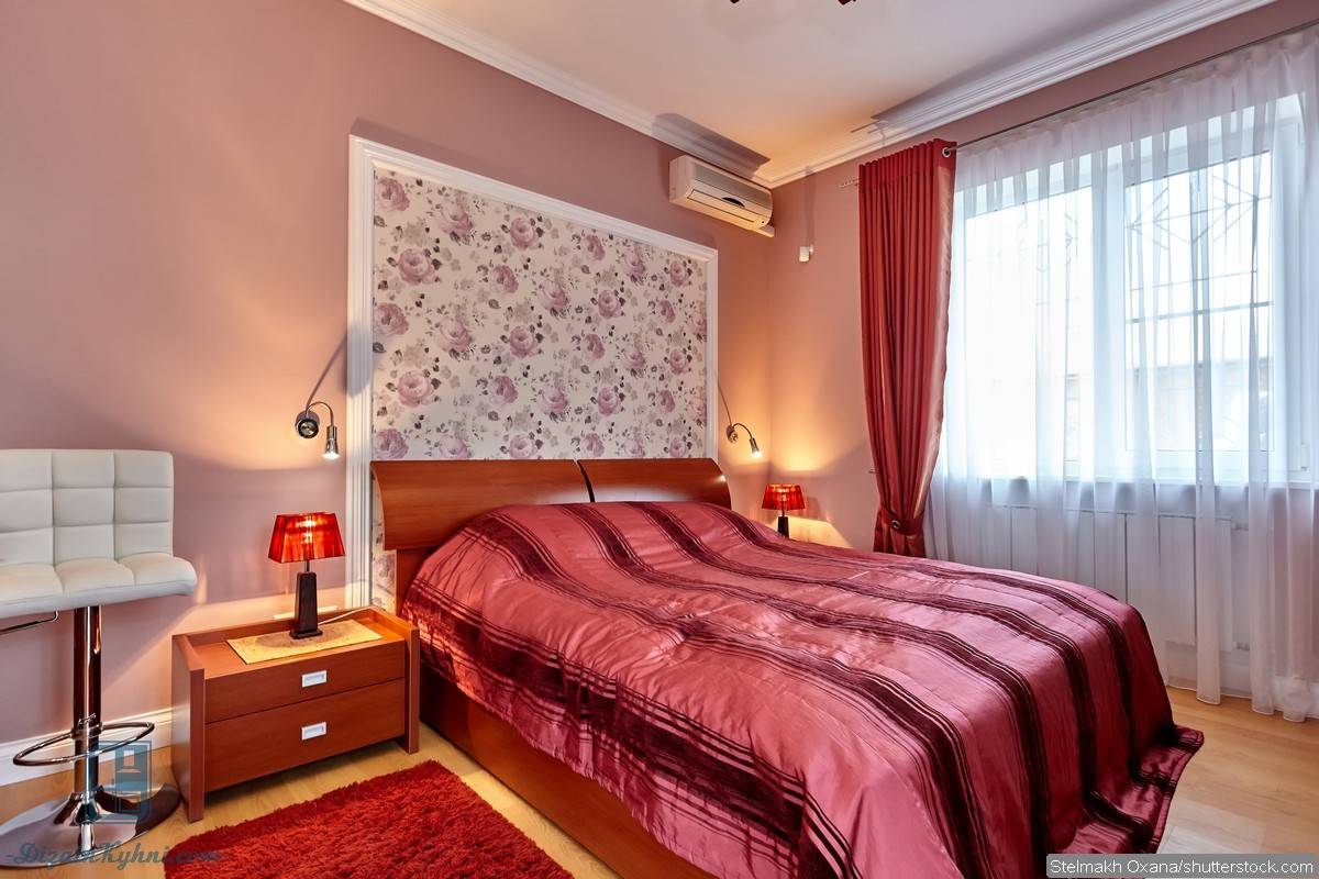 Узкая розовая спальня с нишей в стене у изголовьяИсточник bucwar.ru
