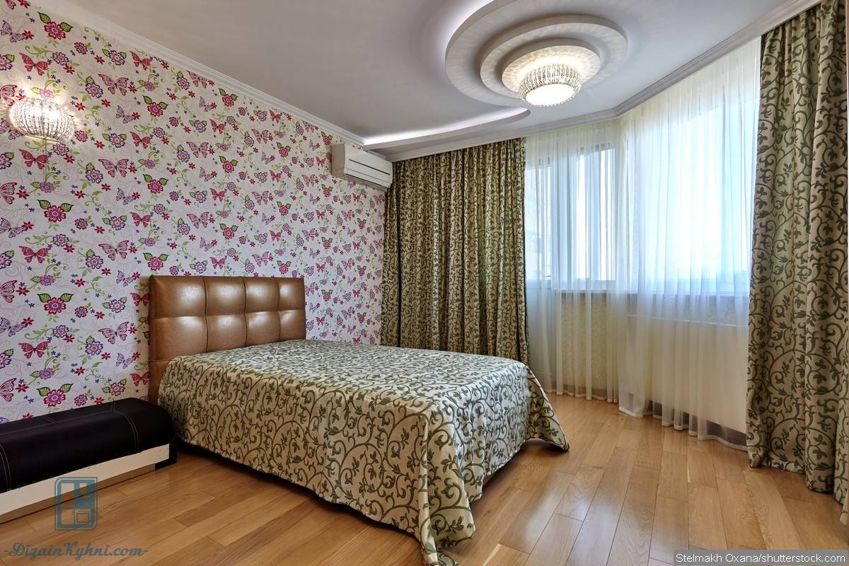 Модной тенденцией последних лет стали глянцевые потолки разных цветов, а также зеркальные покрытия. С одной стороны, они визуально увеличат размер спальни и наполнят ее воздухом и светом. С другой, при непродуманном освещении блики будут только мешать расслабиться и успокоиться. Также это не должно быть излишним или вычурным, все должно настраивать на сон. Цветовая палитра зависит от выбранного стиля, но лучше отдать предпочтение светлым тонам.