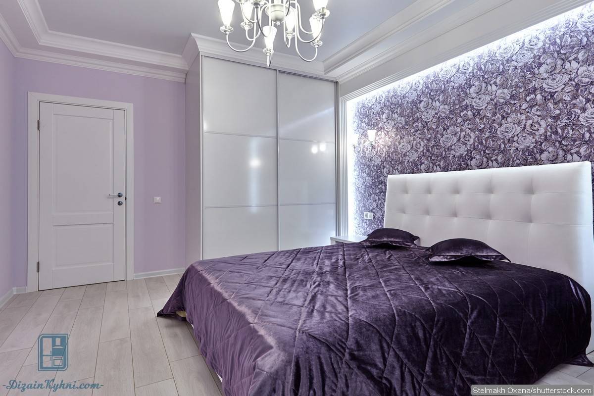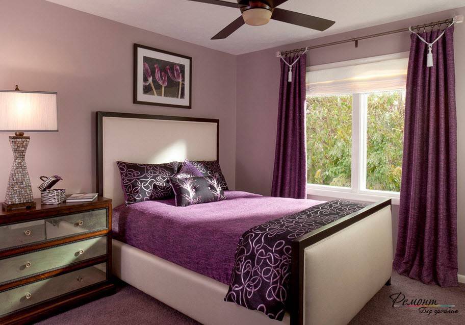 Фиолетовый цвет привносит в спальню особую изысканность.