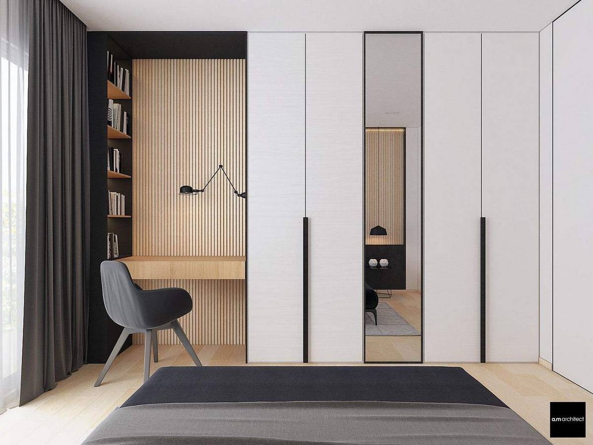 Узкая спальня с преобладающим белым и черным акцентомИсточник remontbp.com