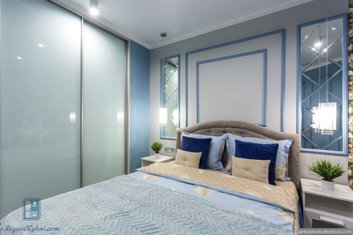 Узкая спальня с дизайном в голубом оттенкеИсточник photointeriorpro.ru