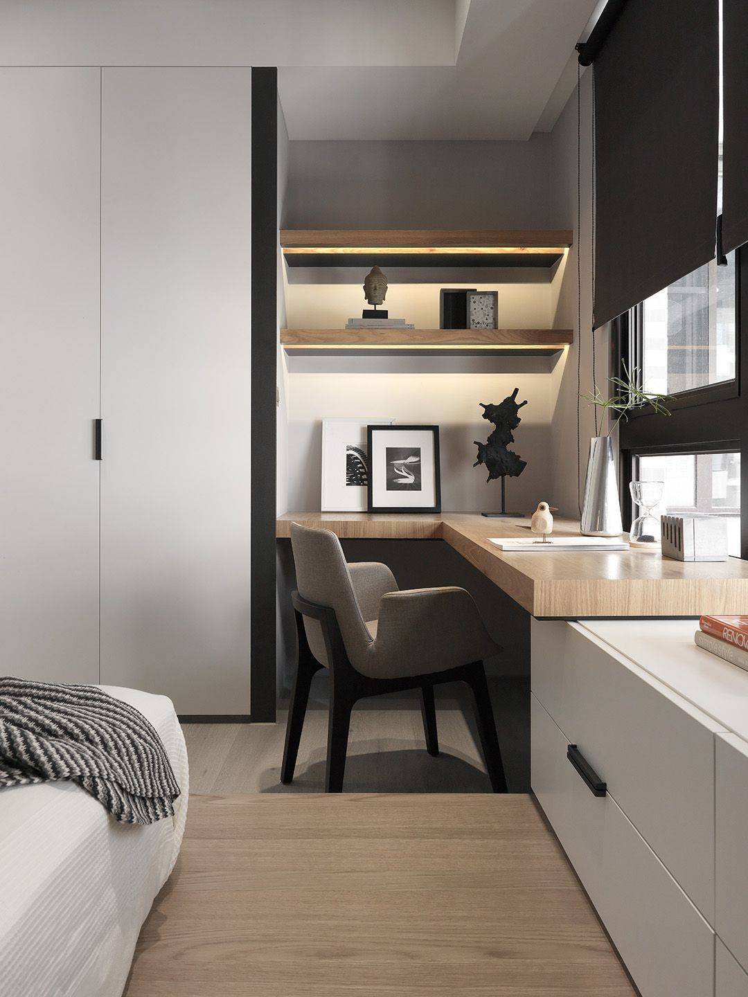 Небольшая спальня, выполняющая одновременно функцию кабинета.