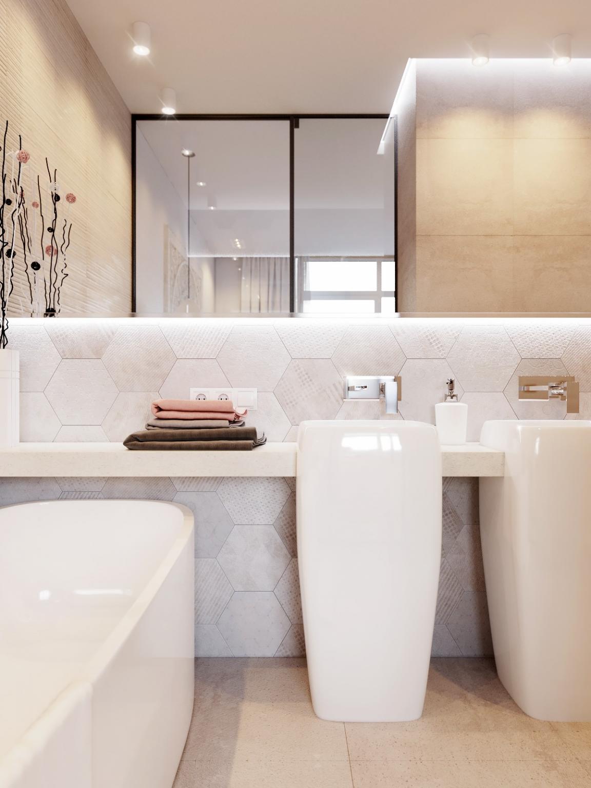 Современная ванная комната в бежевом