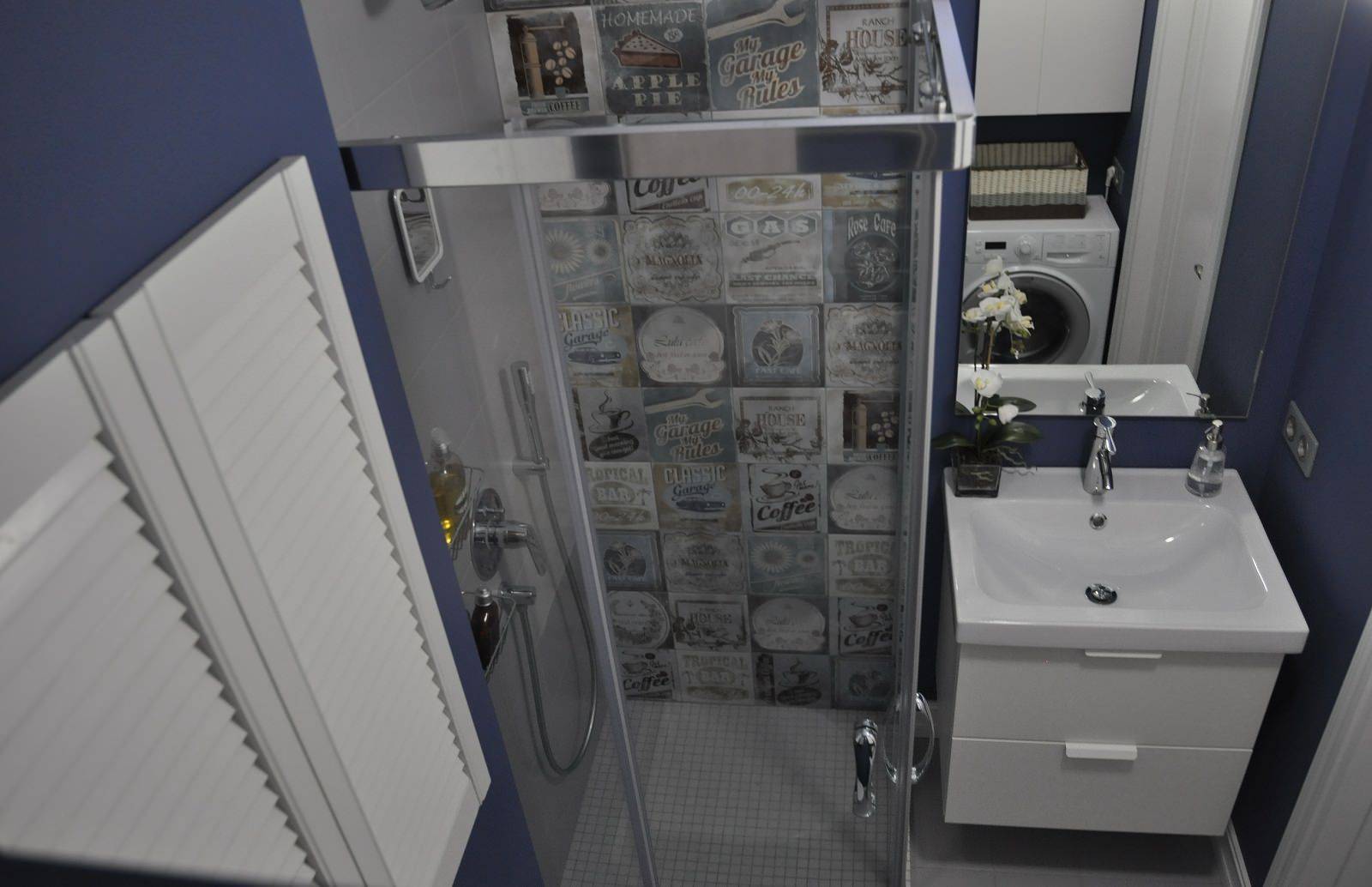 Маленькая ванная комната с декором