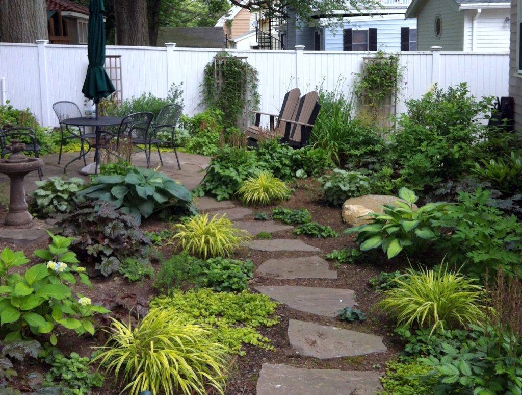 Плохо выглядит на маленьких участках изобилие пустых мест, но и перенасыщенность недопустима, все должно быть высажено и выстроено гармонично.