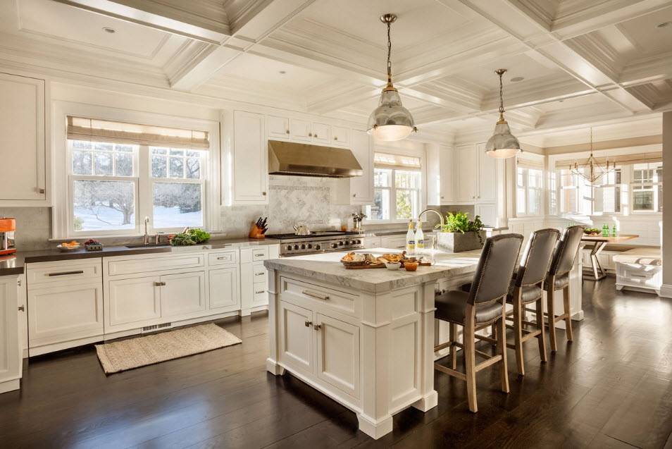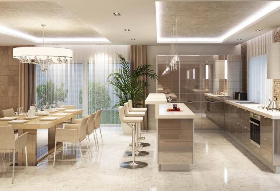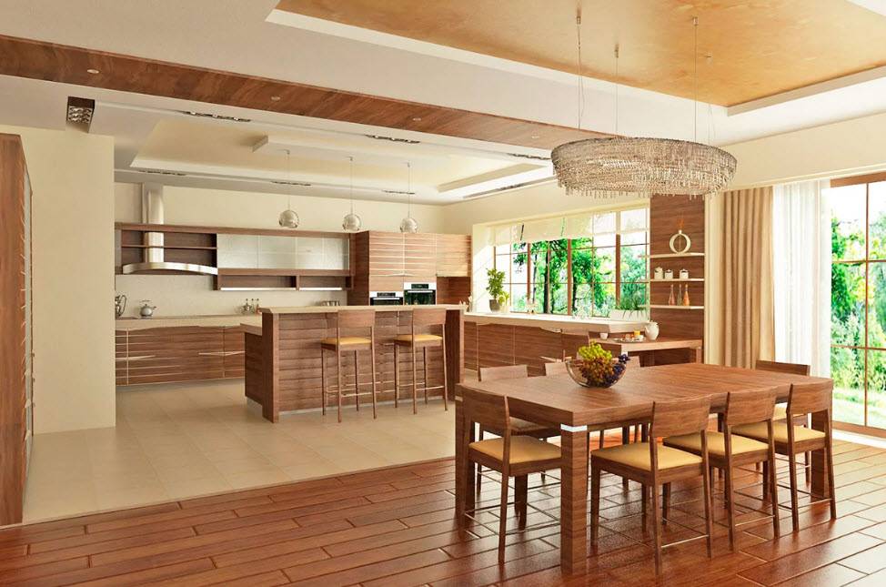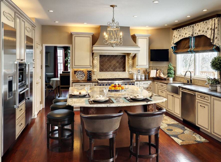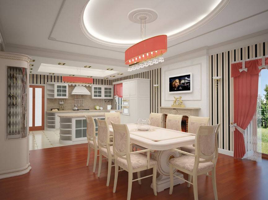 Классическая кухня-гостиная, оформленная по типу классики должна отвечать нескольким требованиям: