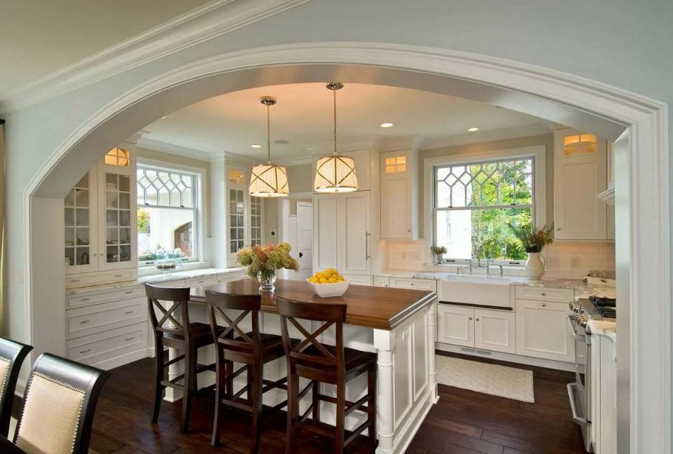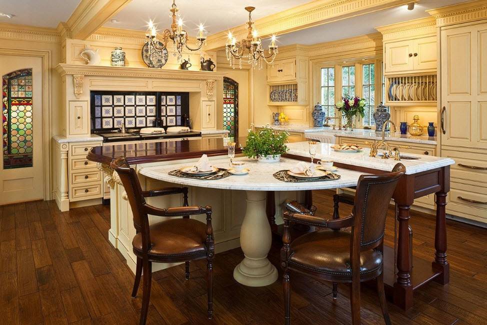 Кухня-остров обрела популярность в конце 80-х годов, хотя концепция восходит к средневековью, когда в центре большого кухонного помещения располагался массивный разделочный стол-верстак.