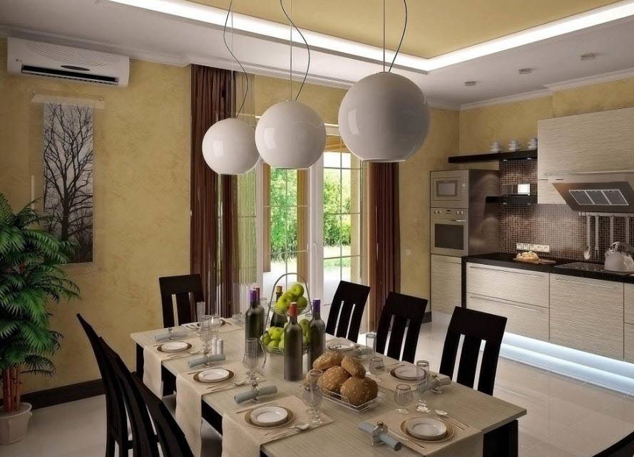 Обеденная зона обязательно должна иметь дополнительную искусственную подсветку.