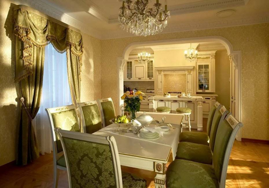 Цветовая гамма кухни — гостиной в стиле «ампир»: