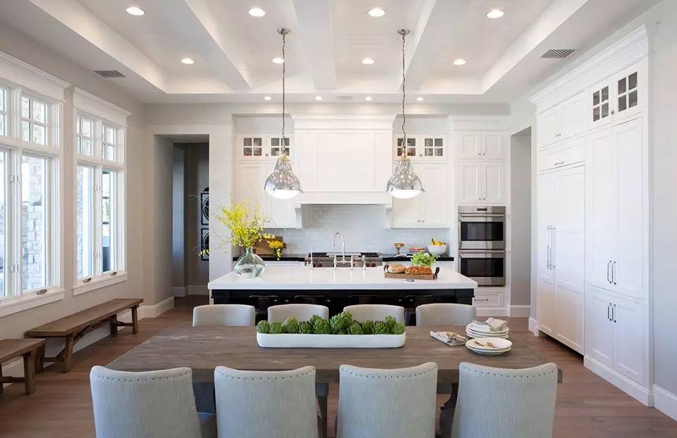 Свет решает любую проблему и может преобразить даже самое скромное помещение. Его просто нужно правильно использовать. Без освещения в столовой и кухне в целом не обойтись.