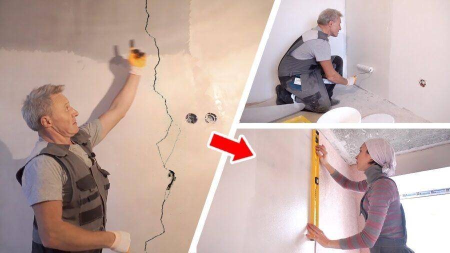 - Заделка дефектов. Устранение видимых изъянов осуществляется смесью из гипса, после чего поверхность шпаклюется.