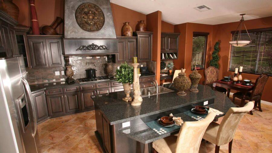 Редко встречаются коричневые обои на кухне, так как помещение небольшое и требующее хорошего освещения.