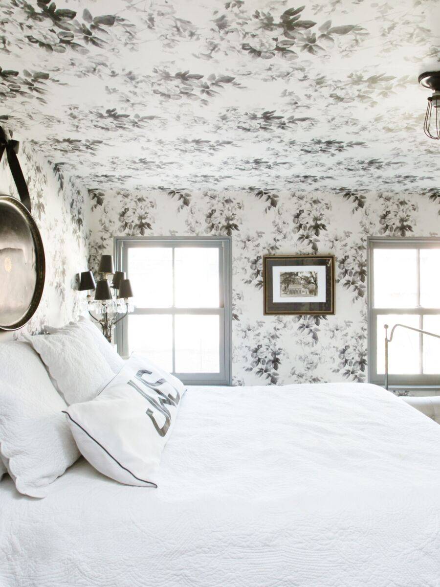 Специалисты рекомендуют подобрать для помещений ограниченной площади глянцевую фактуру и светлый цвет обоев для потолка. Это поможет зрительно увеличить комнату. Спрятать небольшие изъяны потолочной поверхности помогут плотные обои с глубоким рельефным рисунком.