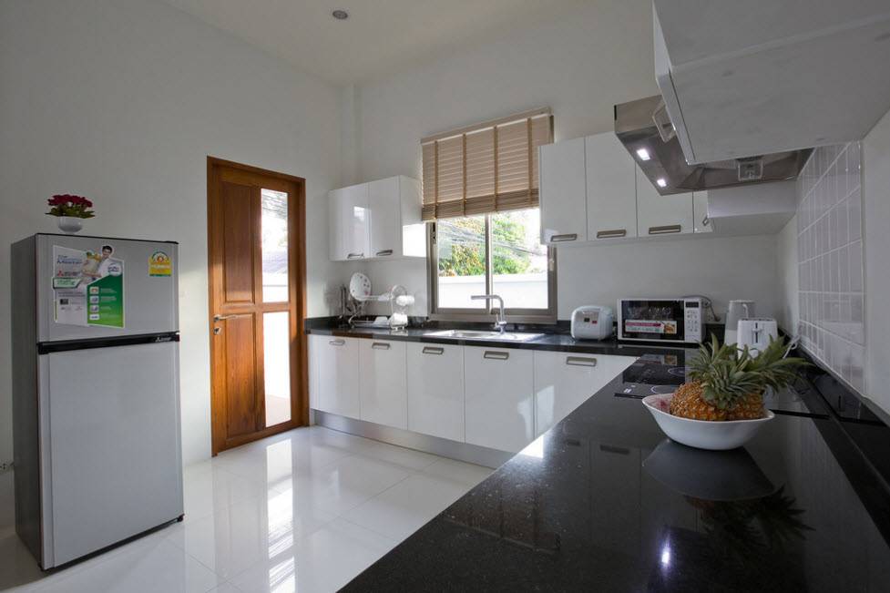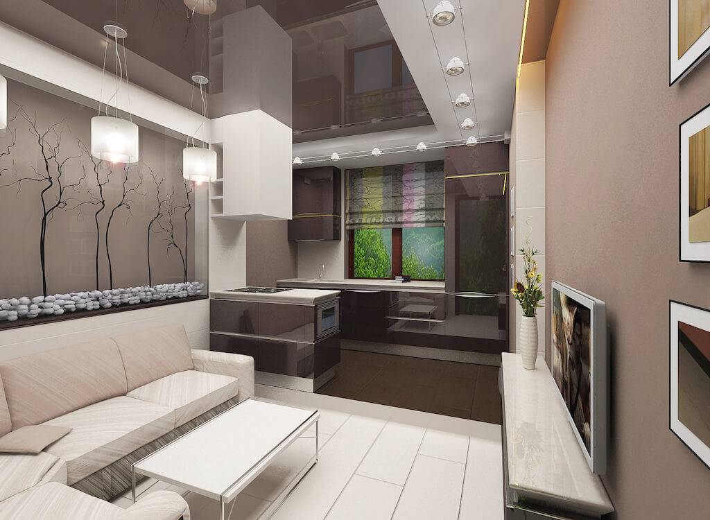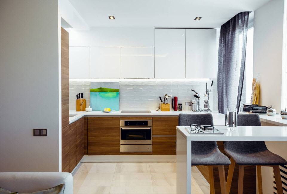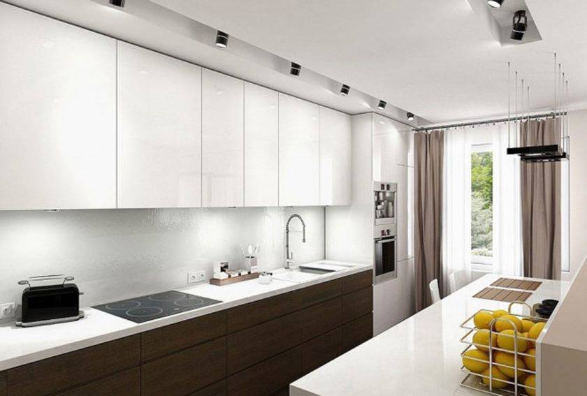 Так, например, вытянутая кухня идеально подойдет для реализации описанных выше вариантов планировки.