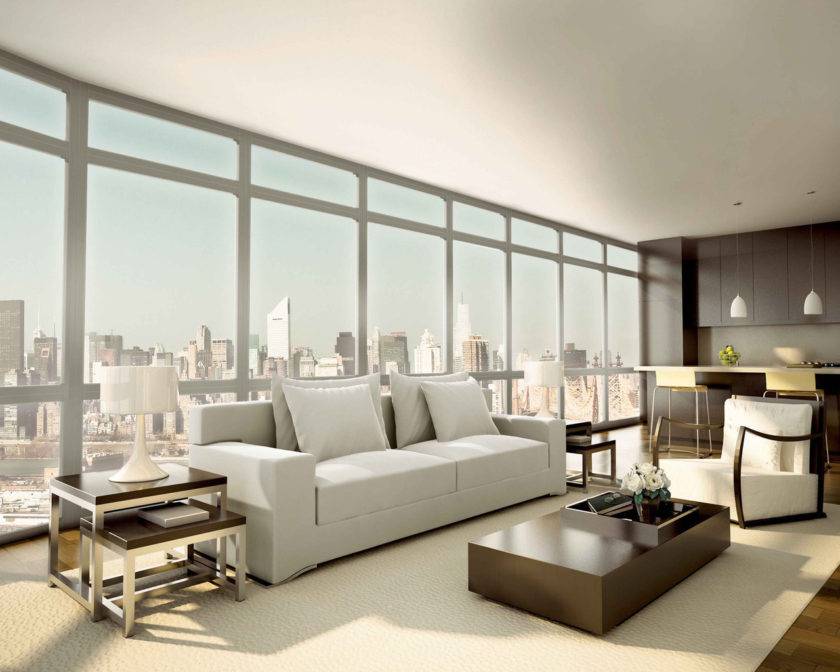 Для обеспечения максимального пространства, воздушности и простоты выбирают минимализм. В таком случае используют естественное освещение, а для затенения окна выбирают жалюзи, рулонные шторы, которые могут быть полупрозрачными.
