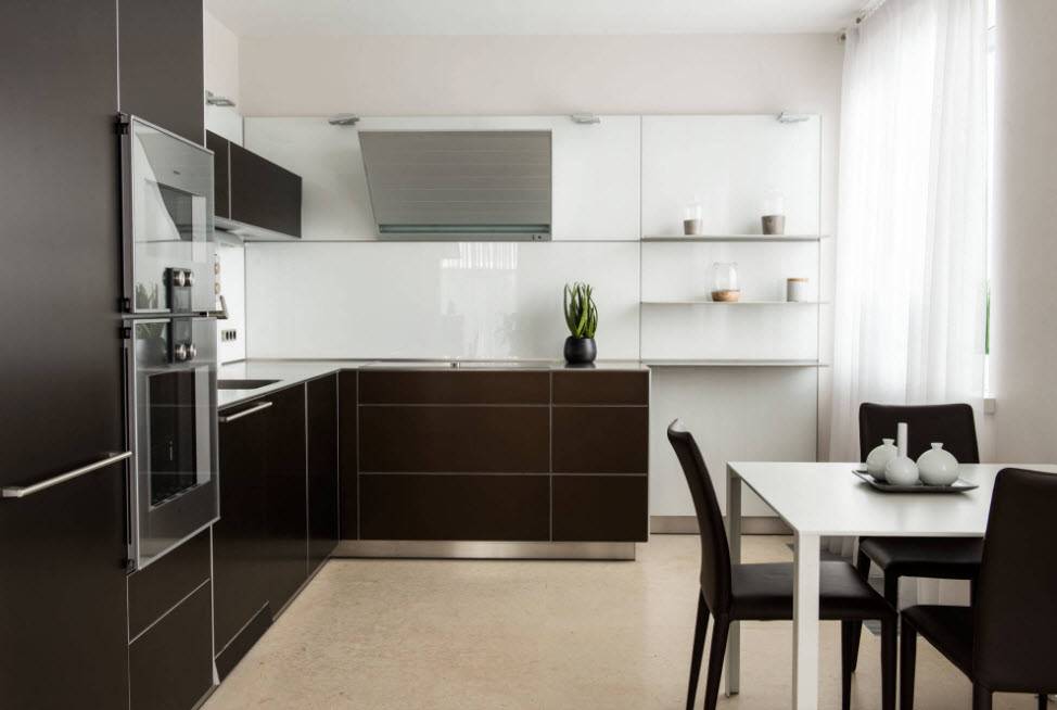 Если кухня без окна планируется на площади темного коридора или кладовой, к ней предъявляются дополнительные требования, влияющие на ее внешний вид: