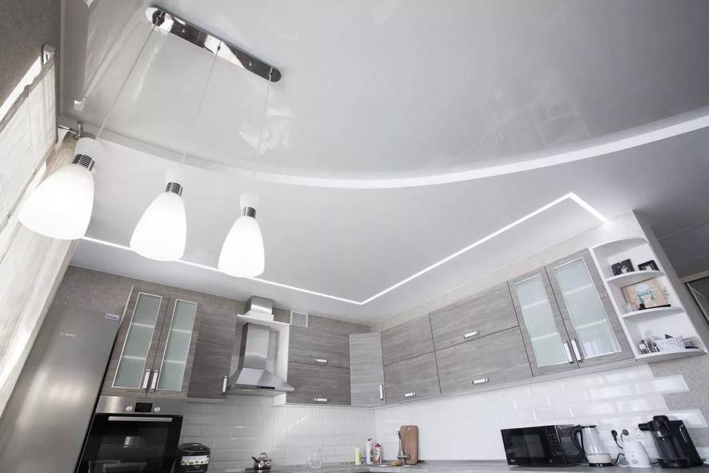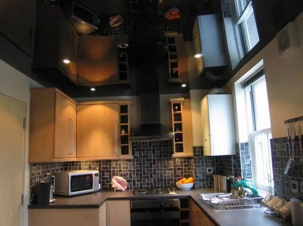 Они с легкостью выдерживают большой вес воды, если вдруг вас затопят соседи с верхних этажей. Натяжные потолки в маленькой кухне позволят воплотить в жизнь самые разнообразные конструкции — создание визуальных эффектов или пространственных конфигураций.