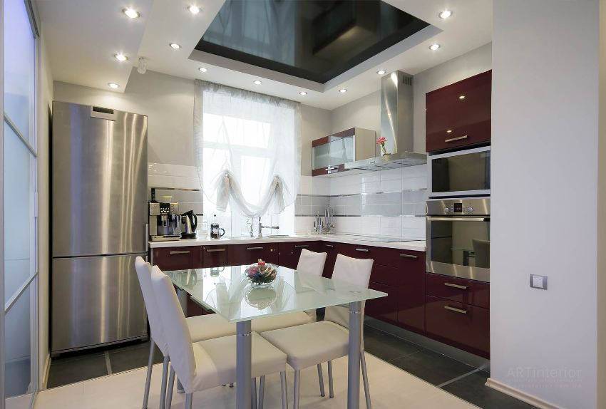 Потолок на маленькой кухне может быть существенно преображен, если к дизайну и ремонту подойти основательно, чтобы вечерами наслаждаться красотой, комфортом и уютом за семейным столом.