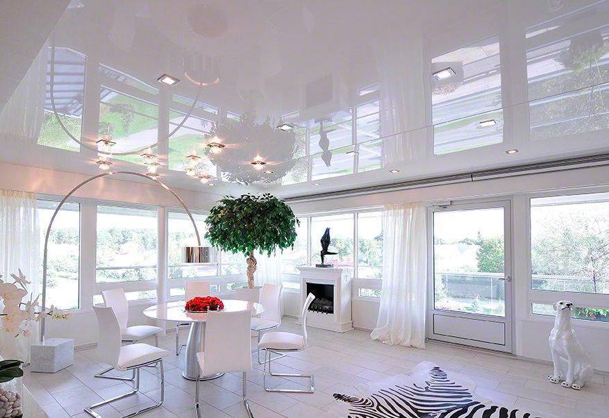 для скромных по квадратным метрам помещений выигрышным считается использование глянцевого типа поверхности – зеркальное отображение того, что находится внизу, поможет созданию красивого объема;