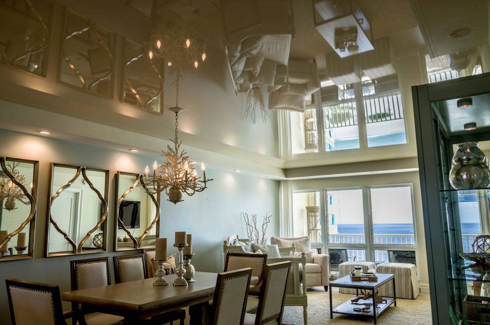 То, что такой потолок сделает ваш потолок физически ниже и так понятно, но визуально это ощущаться не будет, напротив – благодаря зеркальной поверхности эффект будет обратным и комната будет казаться больше. Это определенно положительная черта.