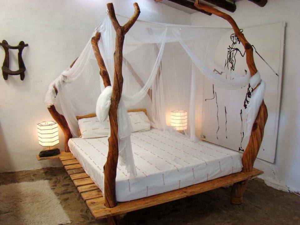Необычная отделка стены в спальнеИсточник domoholic.ru