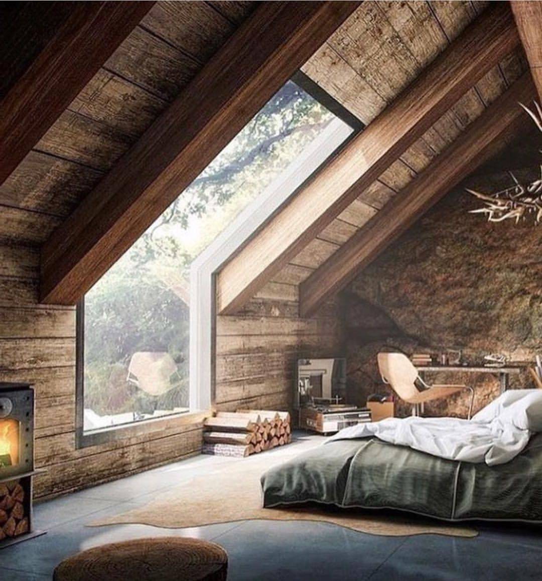 На мансардном этаже можно оставлять нетронутыми балки, это поможет создать уют в помещении и сделать его более просторным.