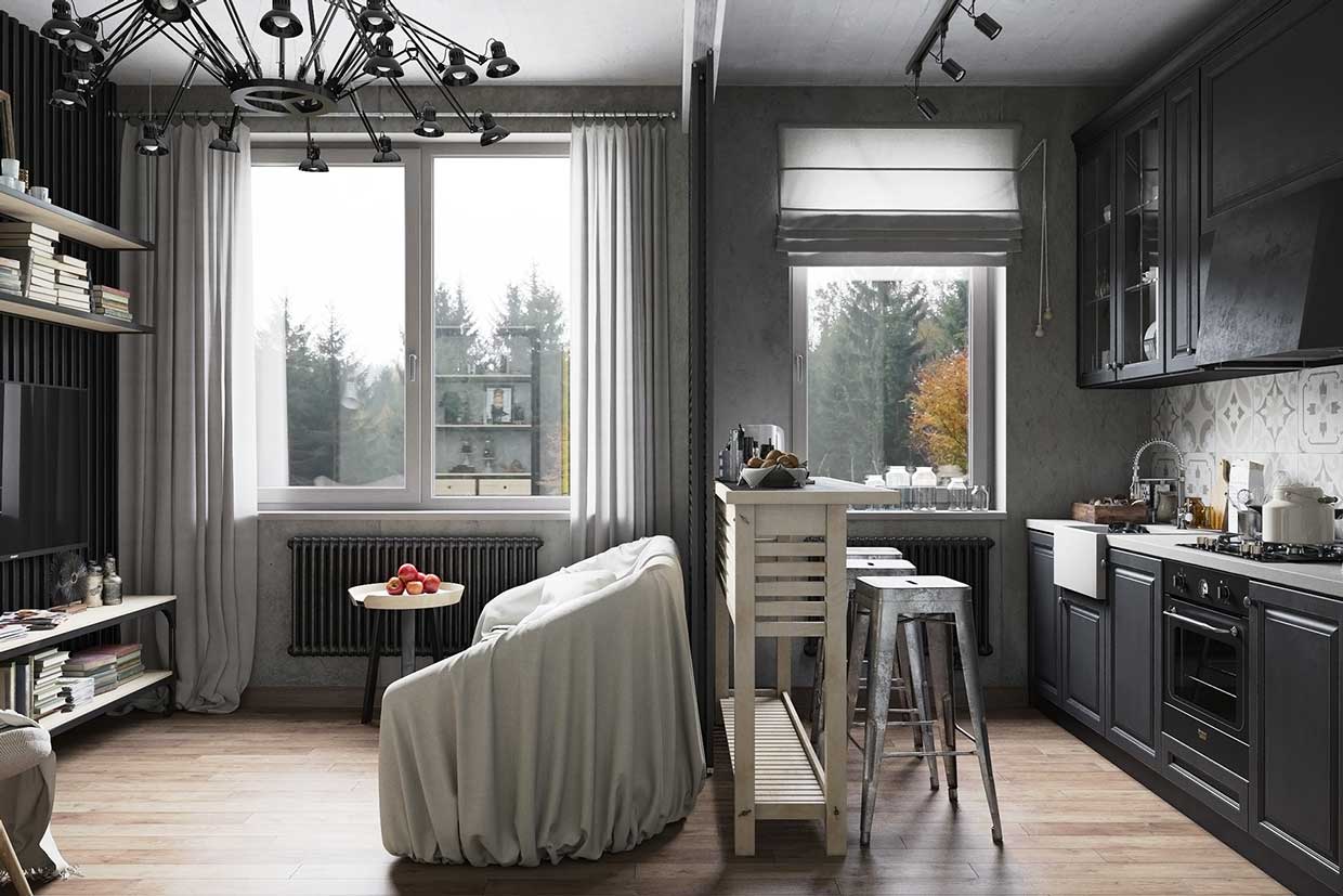 Как удачно разбить пространство кухни студии на зоны