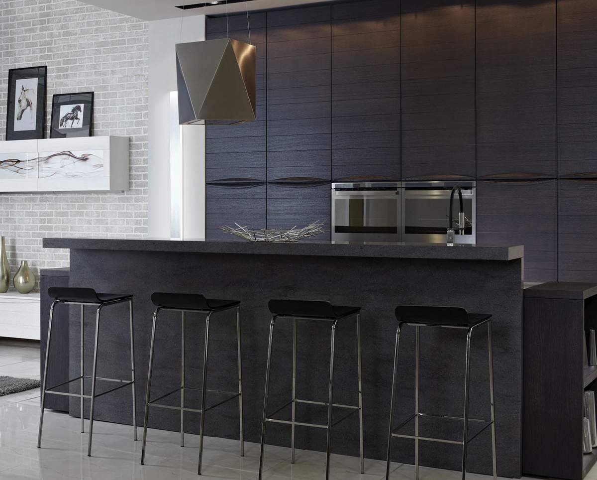 Темные тона можно использовать в кухне достаточной площади