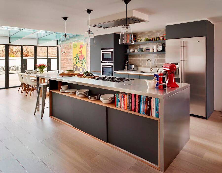 Обычно ее возводят около оставшейся стены. Барная стойка зрительно разграничивает гостиную и зону готовки еды, делает кухонное помещение более современным и стильным.