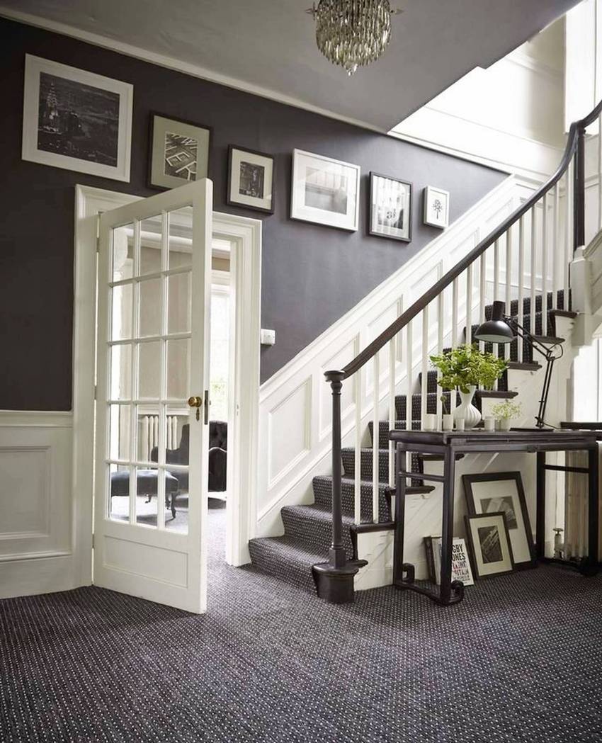 С темными, насыщенными цветами следует быть осторожным. Чаще прихожая небольшого размера и темные стены способны визуально уменьшить помещение. Но если при выборе желанный цвет есть только в темном оттенке, никто не запретит его использовать. Можно включить в интерьер сиреневый, синий, зеленый, каштановый, кофейный, грифельный.