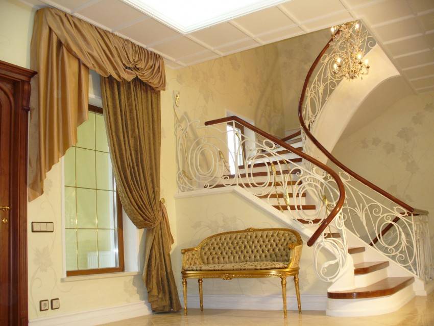 Если ступени изготовлены из мрамора, отличным дополнением к ним станет декоративная ковка. Иногда металлические элементы покрываются позолотой.