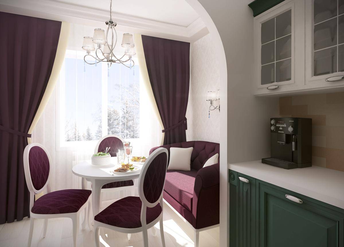 Кухня с обеденным столом и диваном