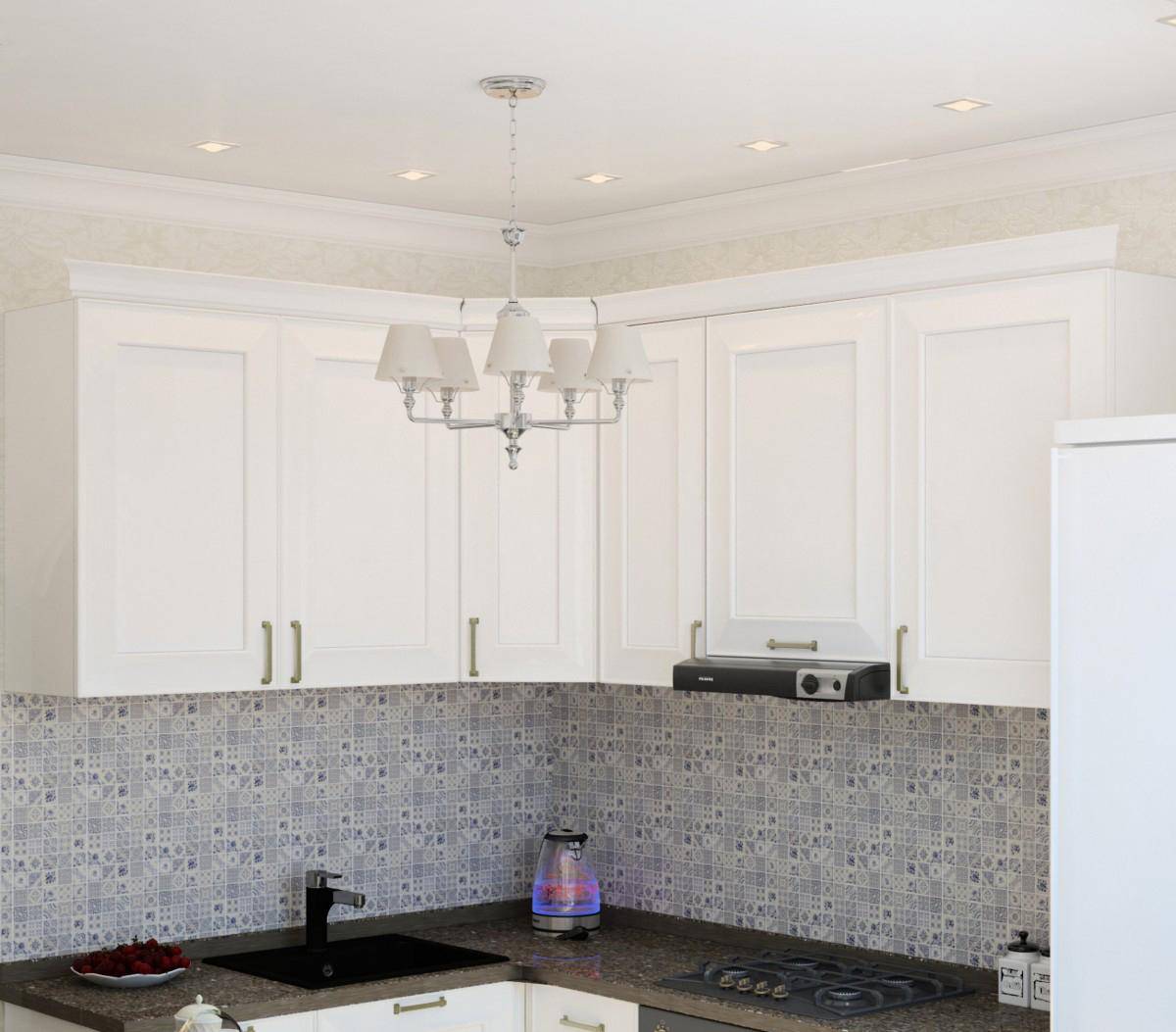 Совет! Если вы планируете создать модный дизайн маленькой кухни 2020, следует продумать функциональную роль углов. Мебельный ансамбль подбирают компактных размеров без громоздких декоративных элементов.