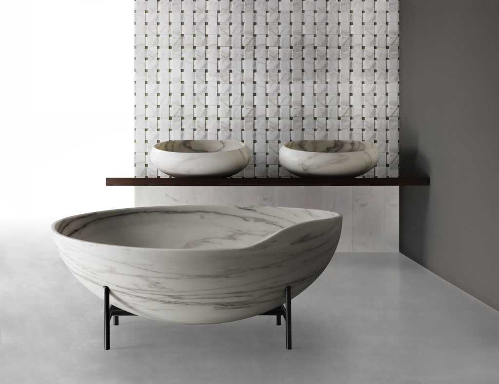 Маленькие плитки — лучший выбор, наряду с белыми стенами или светлыми цветами. Белый цвет делает комнату больше и ярче, а эффект мозаики создает оптическую иллюзию расширения пространства. Мозаика может быть создана путем сочетания нескольких цветов или форм, в зависимости от ваших предпочтений, а камень является основным материалом, когда речь идет о современном стиле.