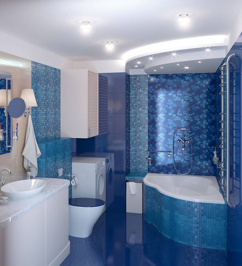 Устанавливаются и другие зоны для разных мелочей и стиральной машины. Это можно увидеть на фото дизайна современной ванной.