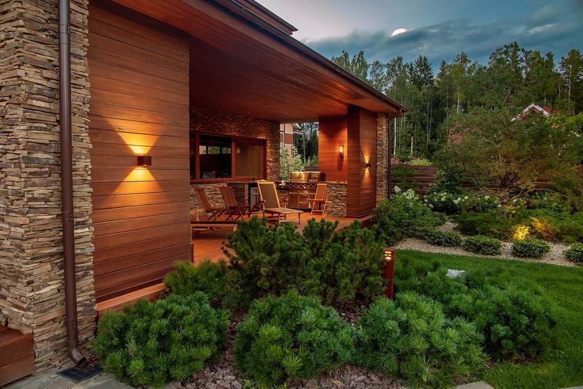 Выберите акцентное пятно, которое будет выделяться на участке и станет центром дизайна. В большинстве случаев данная роль отводится жилому дому, а остальные объекты располагаются вокруг него, поддерживая единый стиль
